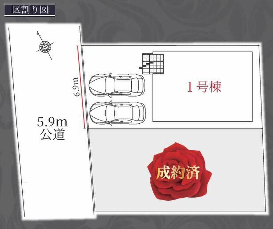 | 駐車場 | 2台 | 道路の幅員 | 道路幅:5.9m、アスファルト舗装、西側 約5.9m 公道 |