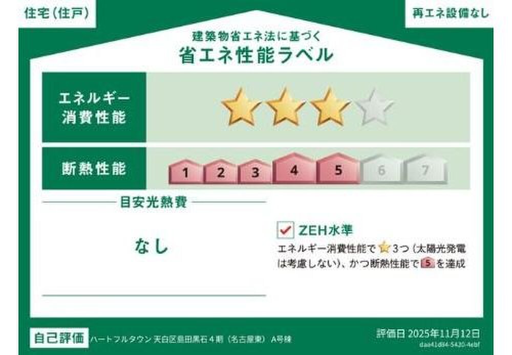 - エネルギー消費性能:★★★(削減率20%達成)