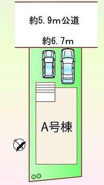 | 駐車場 | 2台(車種による) | 道路の幅員 | 道路幅:5.9m、アスファルト舗装、北側 約5.9m 公道 |