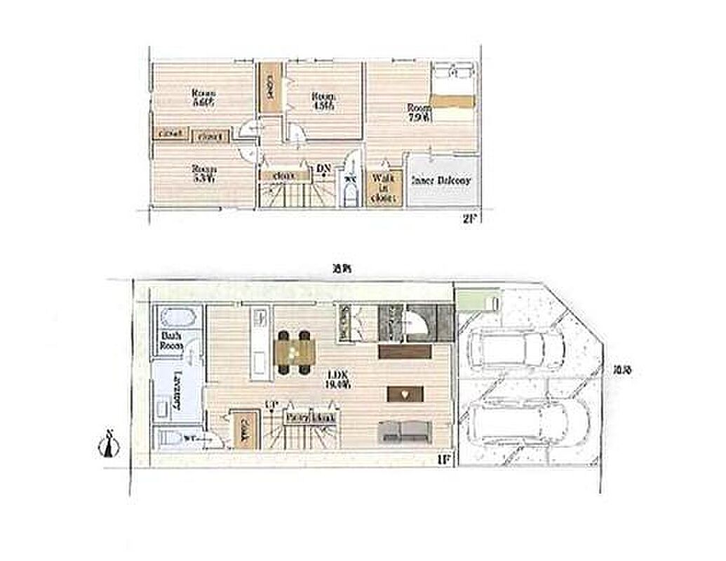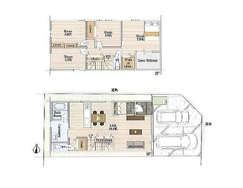 | 建物面積 | 97.81m2・106.28m2 | 土地面積 | 97.23m2・114.18m2 |