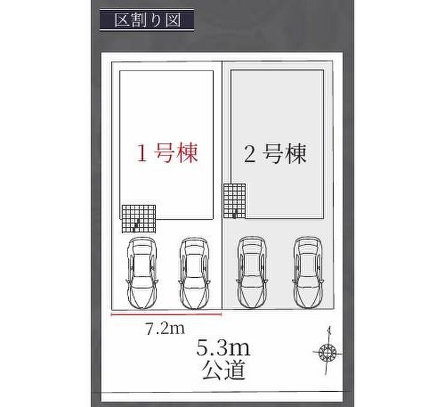 | 駐車場 | 2台 | 道路の幅員 | 道路幅:5.3m、アスファルト舗装、南側 約5.3m 公道 |