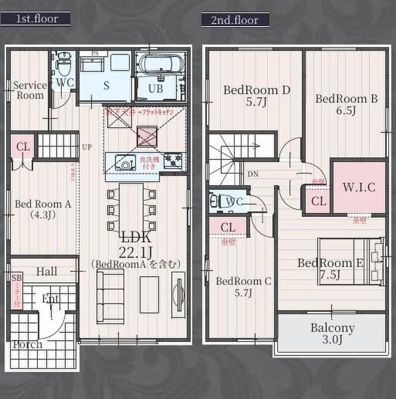 | 間取り | 4LDK+S(納戸)・5LDK+S(納戸) | 建物構造 | 木造アスファルトシングル葺2階建 |
