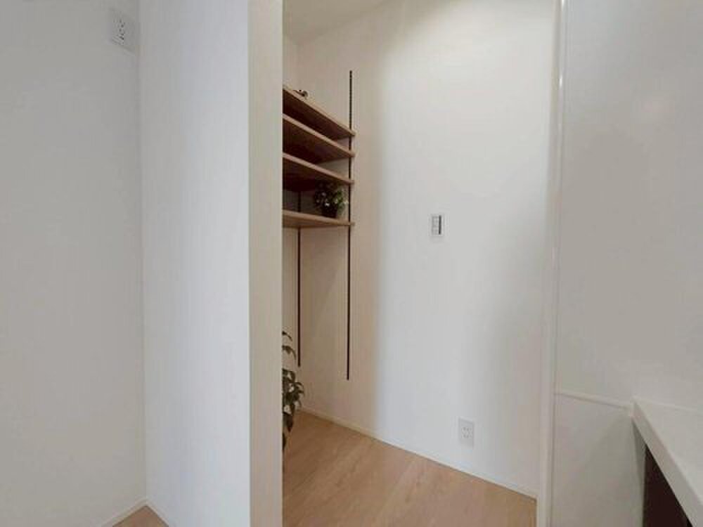 調味料や食品ストックをすっきり収納できるパントリー付き!