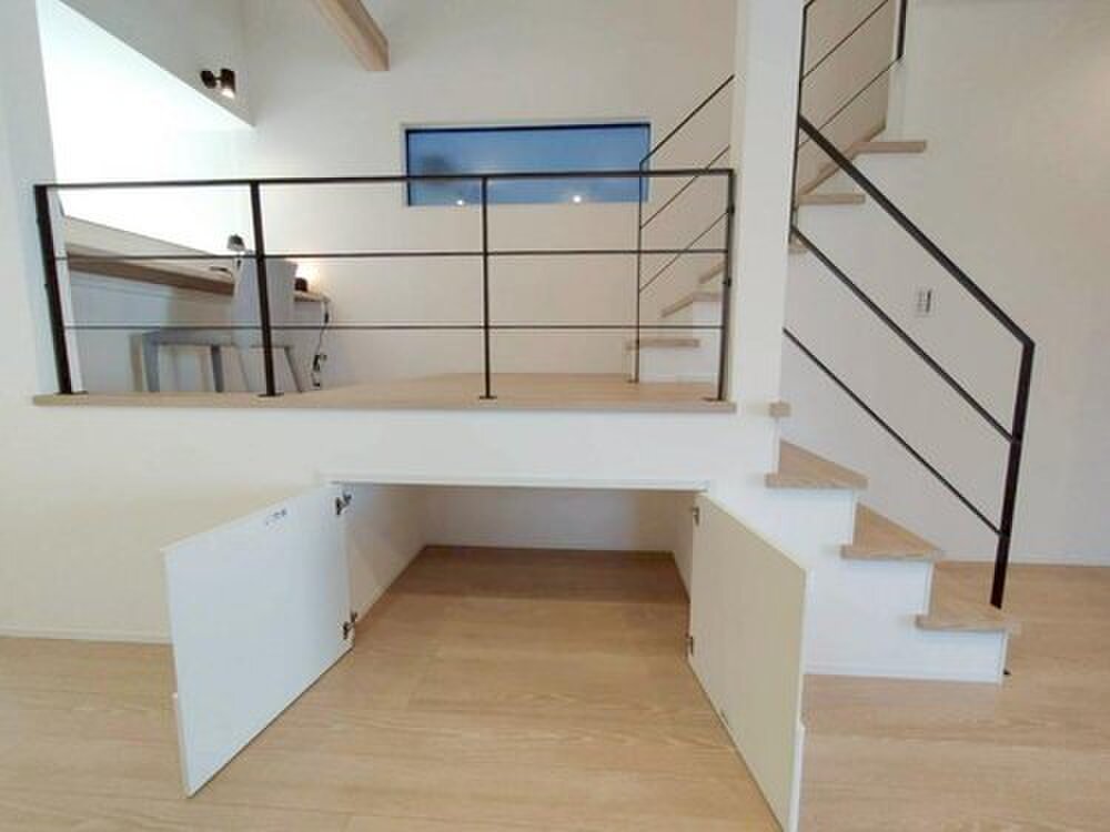 スキップフロア下部の空間を有効活用し、大容量の収納を確保。