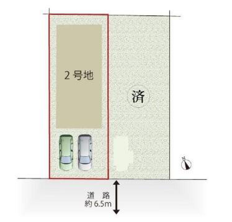 | 駐車場 | 2台 | 道路の幅員 | 道路幅:6.5m、アスファルト舗装、南側 約6.5m 公道 |