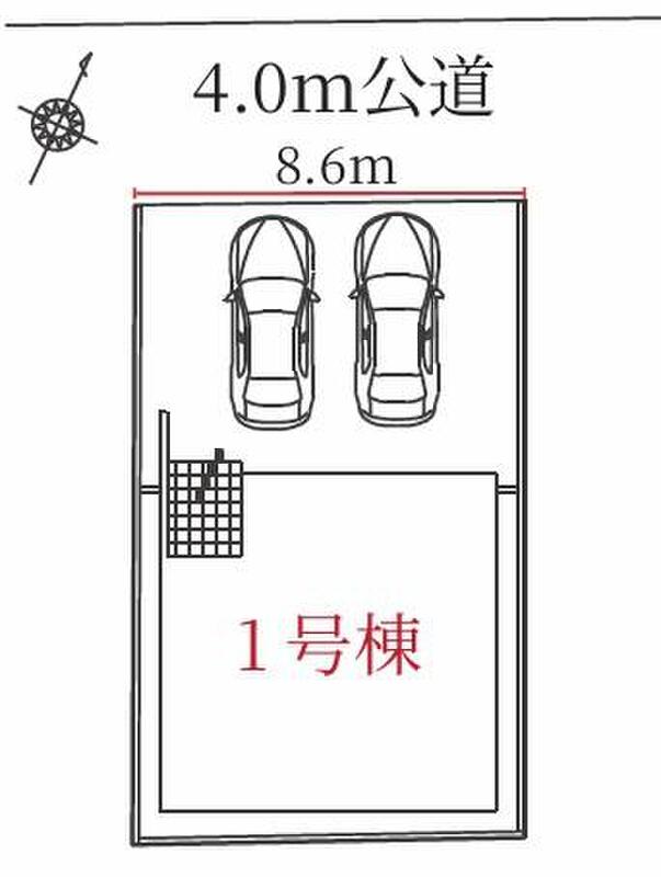 | 駐車場 | 2台 | 道路の幅員 | 道路幅:4m、アスファルト舗装、北側 約4m 公道 |