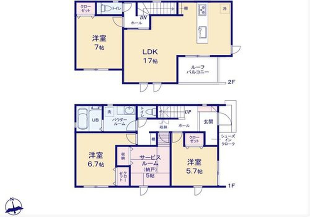 | 間取り | 3LDK・3LDK+S(納戸) | 建物構造 | カラーベストコロニアル葺サイディング張り2階建 |