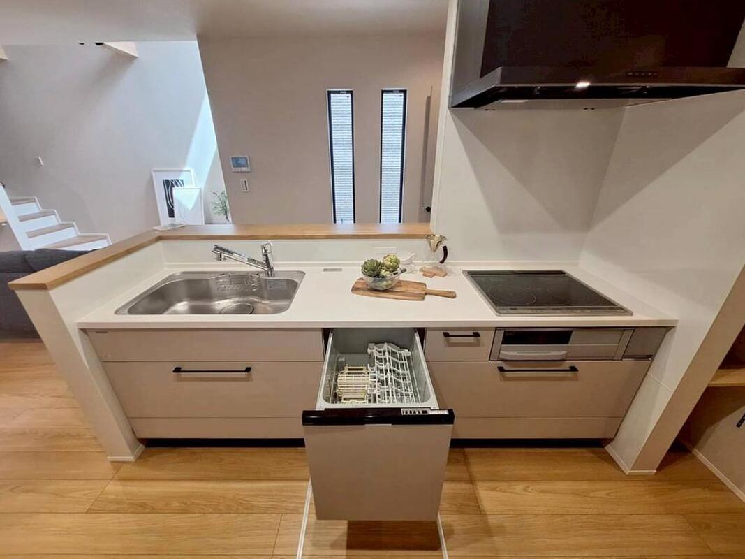 大容量の収納で、散らかりがちなキッチンが綺麗に片付きます!床下収納も付いているので、収納に困りません。