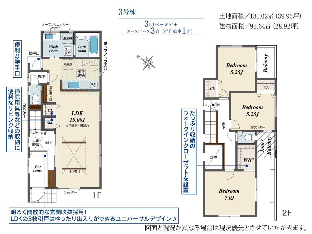| 建物面積 | 95.64m2(約28.93坪)~98.95m2(約29.93坪) | 土地面積 | 131.02m2(約39.63坪)~136.02m2(約41.14坪) |