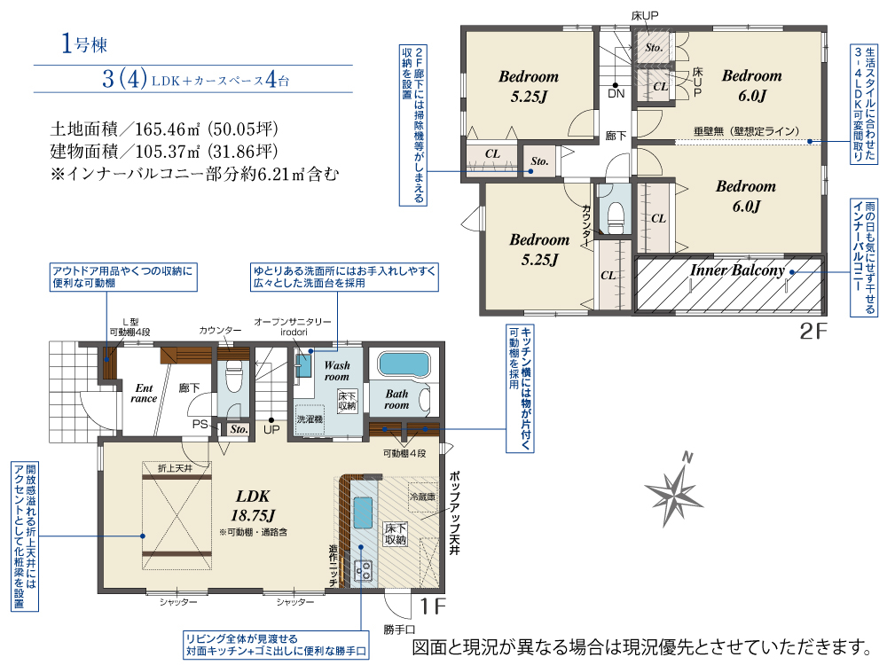 | 建物面積 | 105.37m2(約31.87坪) | 土地面積 | 165.46m2(約50.05坪) |
