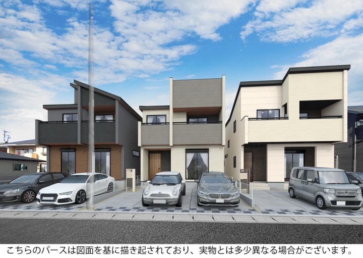 - ※完成予想図やCG合成画像は、門塀・植栽・庭・外観等、実際とは多少異なる場合があります。