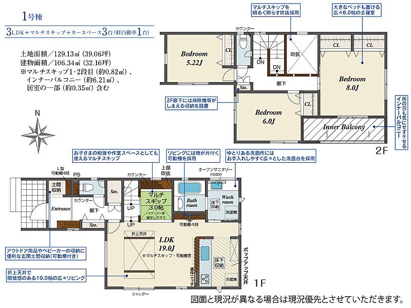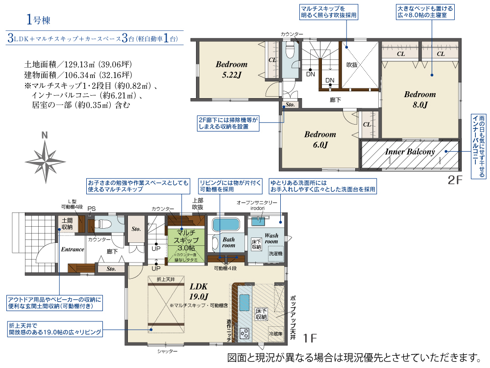 | 建物面積 | 106.34m2(約32.16坪) | 土地面積 | 129.13m2(約39.06坪) |