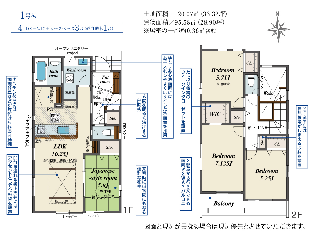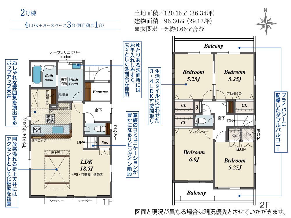 | 建物面積 | 95.58m2(約28.91坪)~103.26m2(約31.23坪) | 土地面積 | 112.00m2(約33.87坪)~120.37m2(約36.41坪) |
