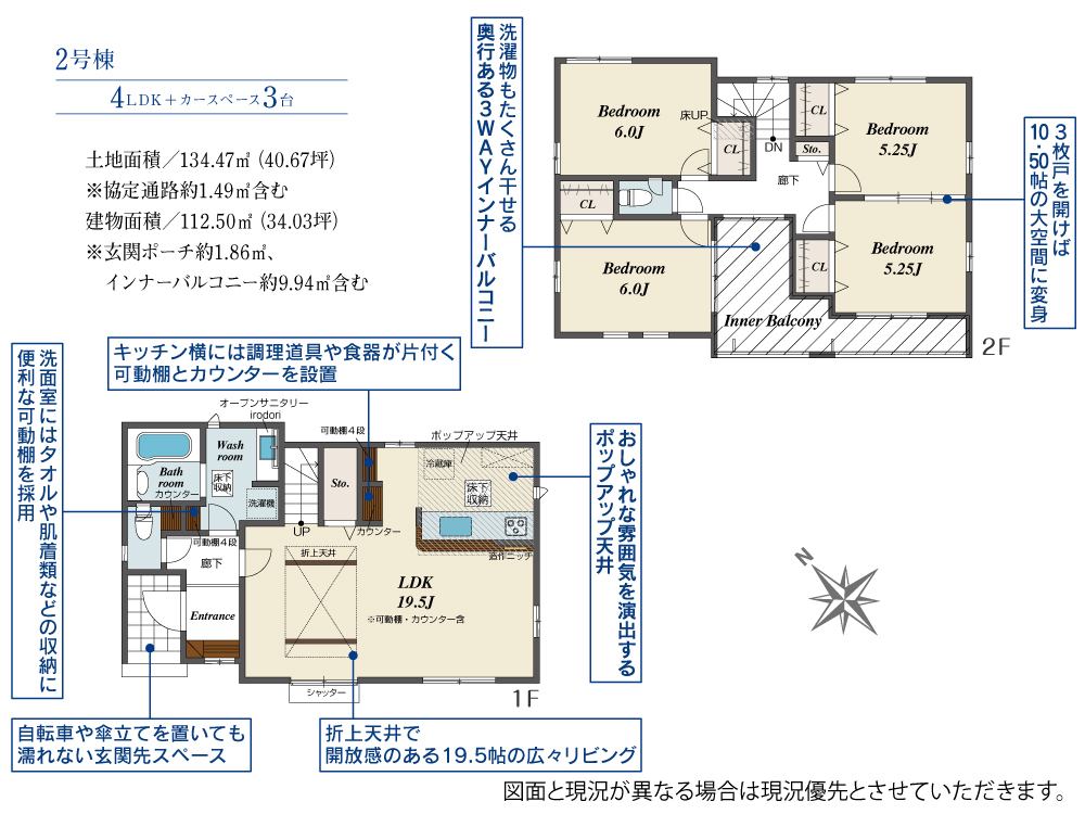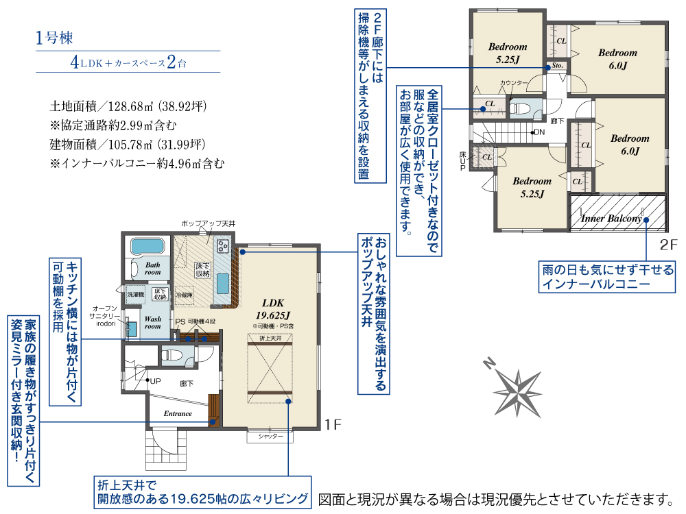 | 建物面積 | 105.78m2(約31.99坪)~112.50m2(約34.03坪) | 土地面積 | 128.68m2(約38.92坪)~134.47m2(約40.67坪) |