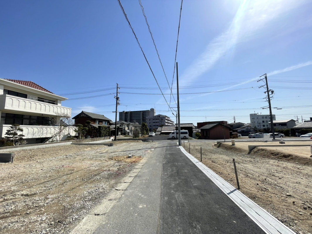 【接道】南東5.6m公道、南西4.0m公道 【設備】公営水道、都市ガス、本下水、中部電力 【協定道路】敷地面積に含む 1号棟:2.99m2、2号棟:1.49m2 【その他法令】22条区域、景観法、宅地造成及び特定盛土等規制法 |