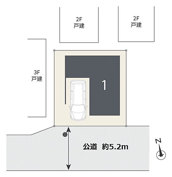 | 駐車場 | 1台(有/1台(1号棟)) | 道路の幅員 | 5.2m |