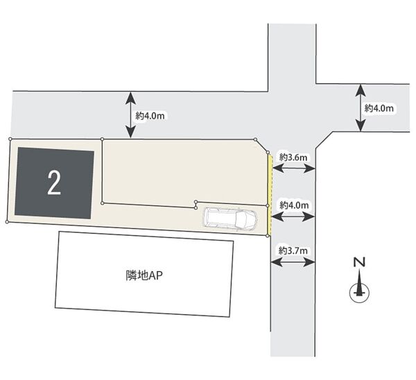 | 駐車場 | 1台(有/1台(2号棟)) | 道路の幅員 | 4m |