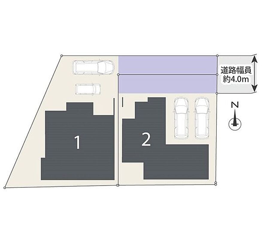 | 駐車場 | 2台(有/2台(1・2号棟)) | 道路の幅員 | 4m |