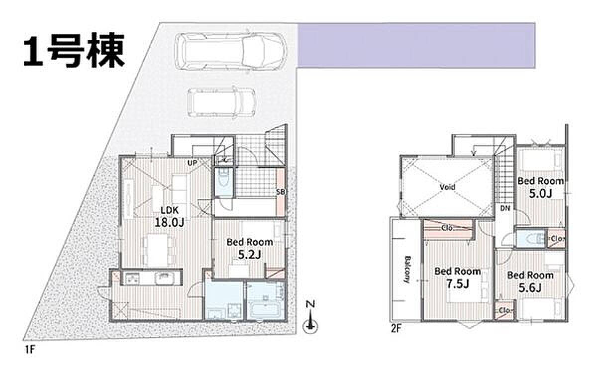 新築一戸建て ◆メルディア北方◆格別の開放感とゆとり!並列2台駐車&広々18帖の吹抜LDKプラン♪