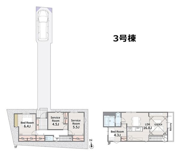 | 建物面積 | 85.28m2~89.69m2 | 土地面積 | 90.34m2~105.99m2 |
