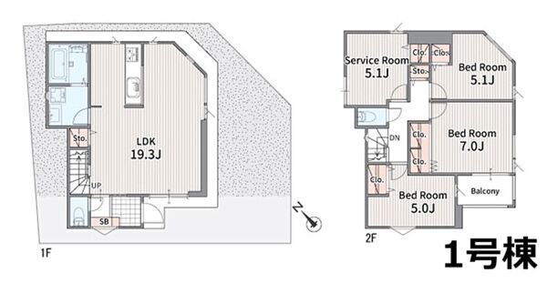 1号棟 間取り 3LDK+S 価格 5090万円 建物面積 99.68m2 土地面積 100.02m2 -