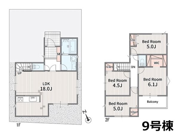 9号棟 間取り 4LDK 価格 4590万円 建物面積 90.46m2 土地面積 100.03m2