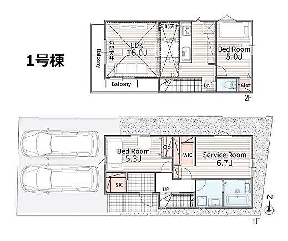 | 駐車場 | 2台(有/2台(1号棟)) | 道路の幅員 | 4.5m |