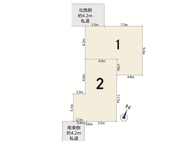 | 駐車場 | 1台(有/1台(2号棟)) | 道路の幅員 | 4.2m |