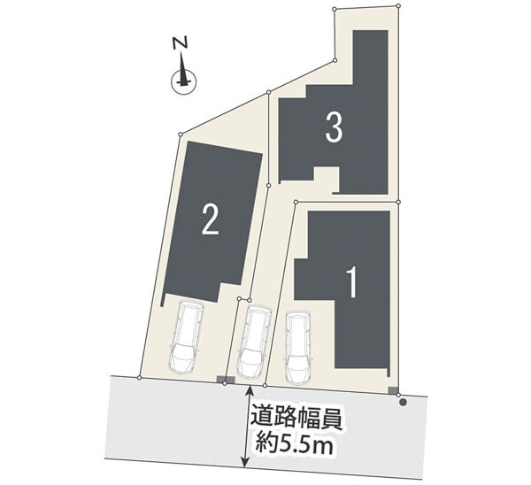 | 駐車場 | 1台(有/1台(1~3号棟)) | 道路の幅員 | 5.5m |