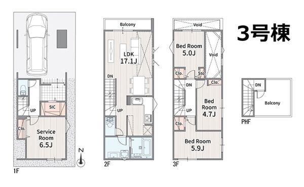 | 間取り | 3LDK+S | 建物構造 | 木造、地上3階建て |