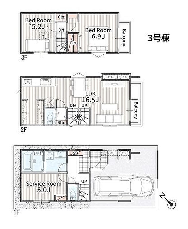 | 間取り | 2LDK+S | 建物構造 | 木造、地上3階建て |