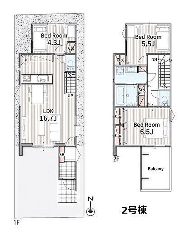○開放的な南北両面道路&南向き&ワイドバルコニー付!家事ラク動線の2階建♪