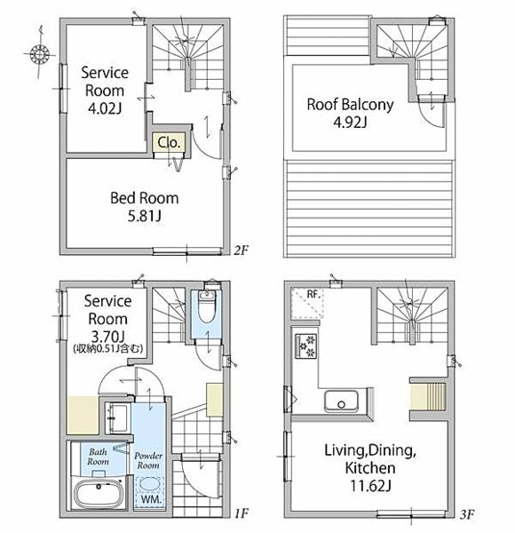 | 間取り | 1LDK+2S | 建物構造 | 木造、地上3階建て |