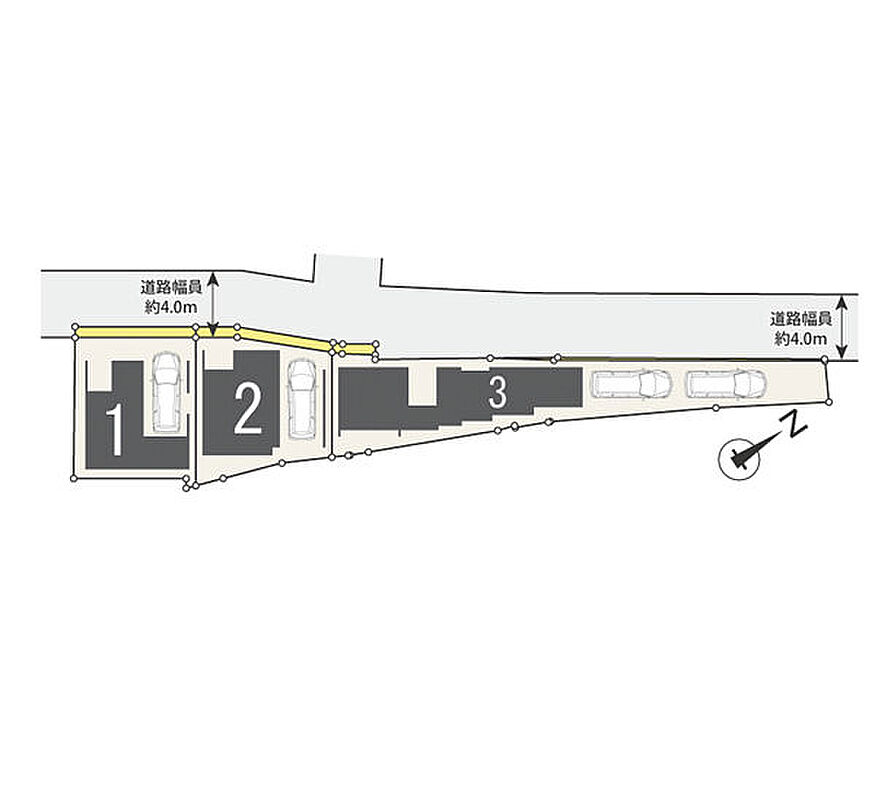 | 駐車場 | 1台(有/1台(1~3号棟)) | 道路の幅員 | 4m |