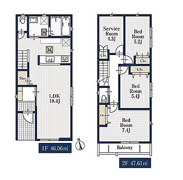 | 建物面積 | 93.67m2~102.38m2 | 土地面積 | 83.16m2~98.71m2 |