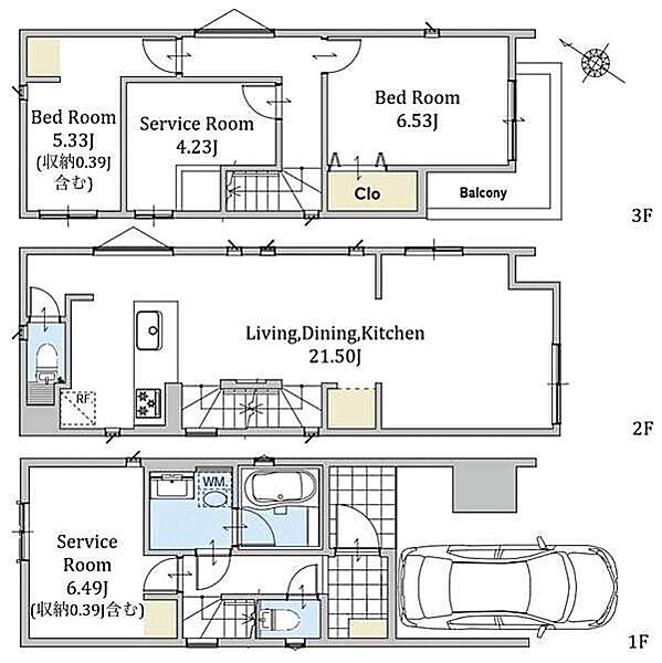 | 間取り | 2LDK+2S | 建物構造 | 木造、地上3階建て |