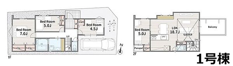 | 駐車場 | 1台(有/1台(1・2号棟)) | 道路の幅員 | 6m~7.7m |