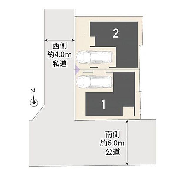 | 駐車場 | 1台(有/1台(1・2号棟)) | 道路の幅員 | 4m~6m |