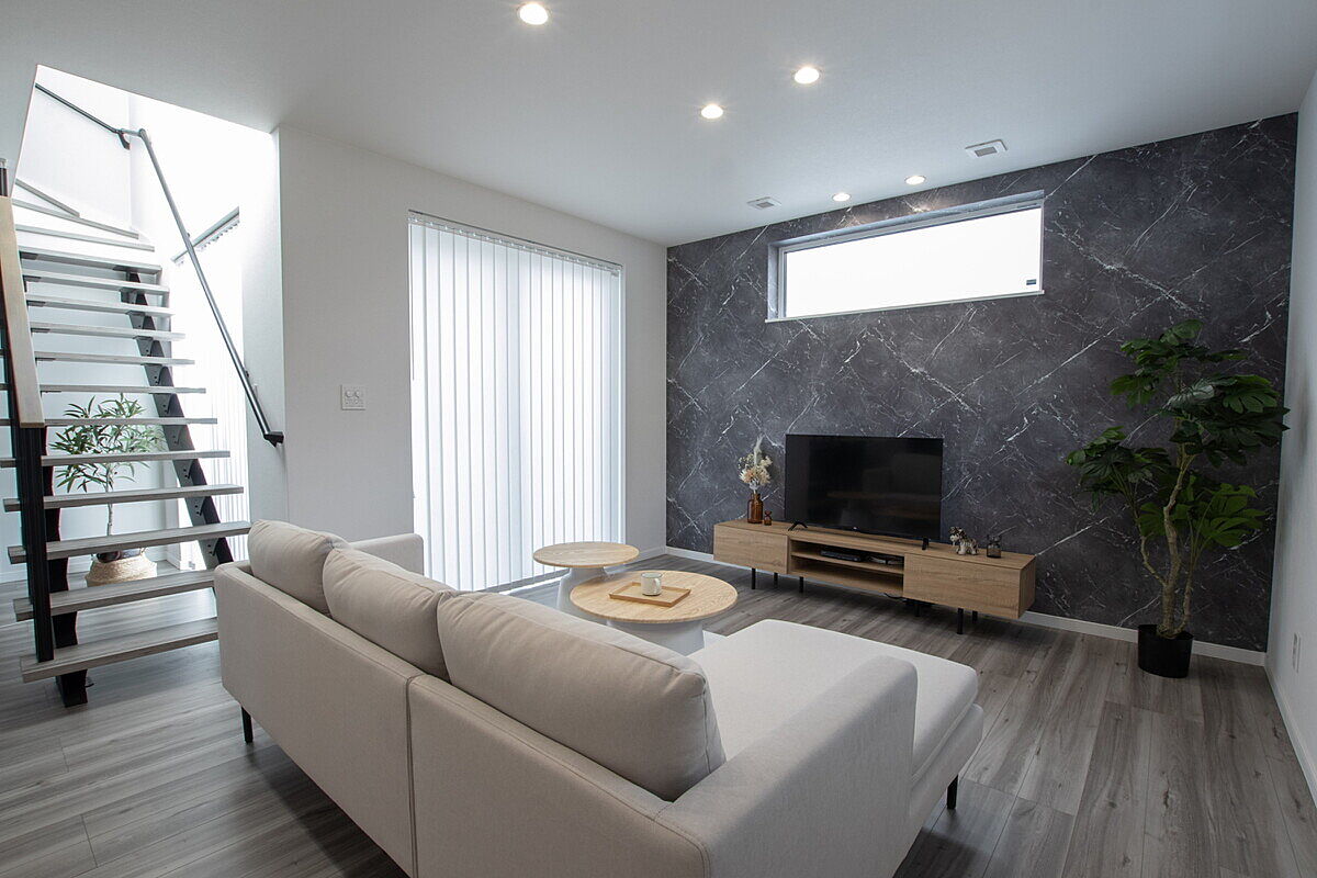 【オープン階段のある19.5帖のLDK】