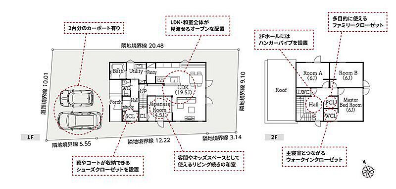 | 駐車場 | 2台 | 道路の幅員 | 西側幅員5.20~5.70mの公道に10.01m接する |