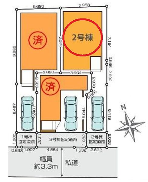 | 駐車場 | 1台 | 道路の幅員 | 南側幅員3.3m私道 |