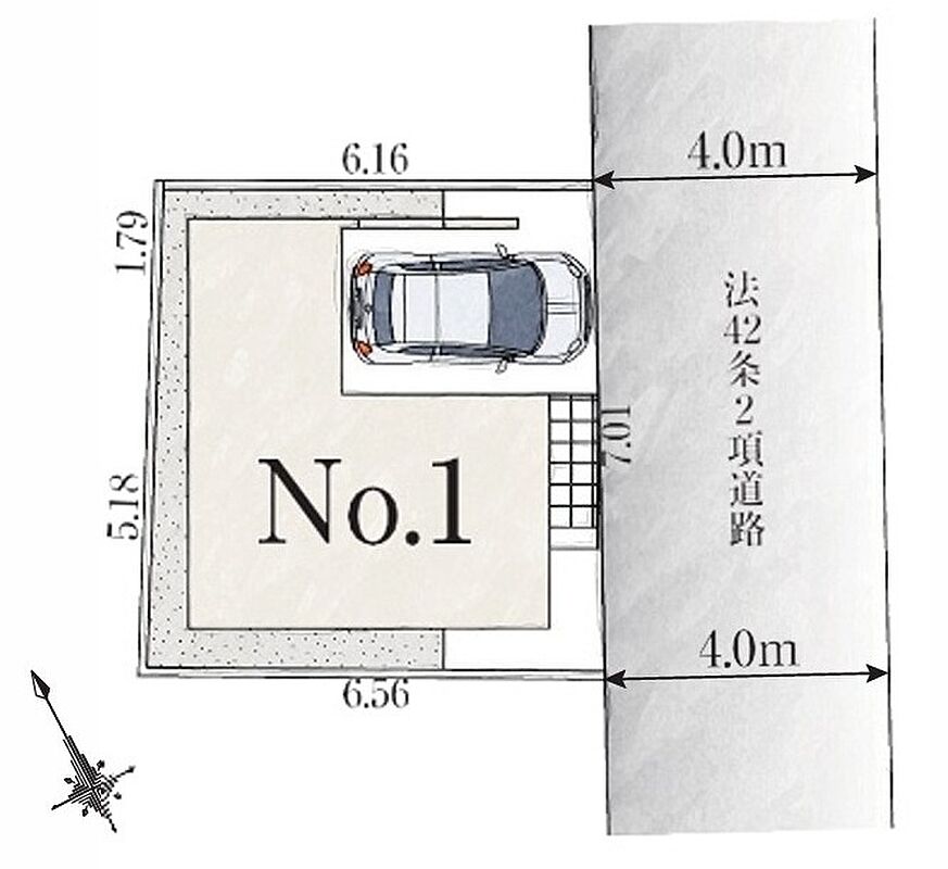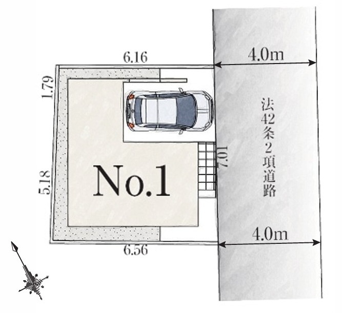 | 駐車場 | 1台 | 道路の幅員 | 南東側幅員4m公道接面7m |