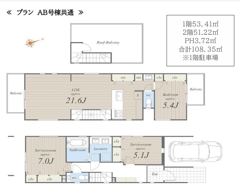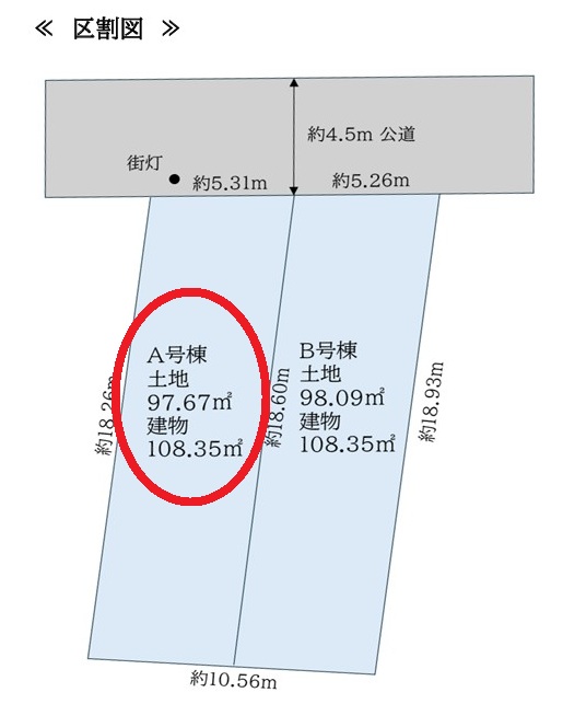 | 建物面積 | 108.35m2 | 土地面積 | 97.67m2 |