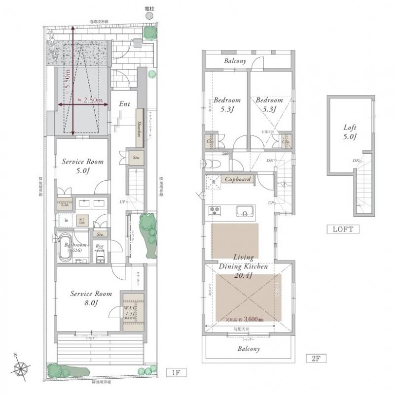 | 駐車場 | 1台 | 道路の幅員 | 北側幅員4m私道 |