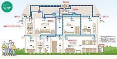 ■ecocoti…1台の空調機で、冷暖房・換気・空気清浄機を行う全館空調システムです。家中いつでもどこでも快適な温度ときれいな空気を保ちます。