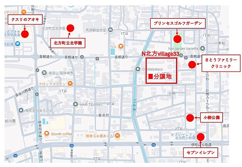 - ※地図上に表示される各種アイコンなどの情報は、おおよその所在地を表すものであり、物件・施設などの地点を保証するものではありません。