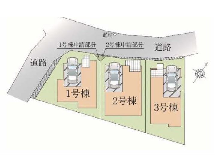 | 駐車場 | 1台 | 道路の幅員 | 1号棟:西4.1m 北3.5m /2号棟:北3.5m |