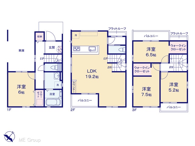 | 建物面積 | 109.09m2~114.94m2 | 土地面積 | 73.3m2~74.37m2 |