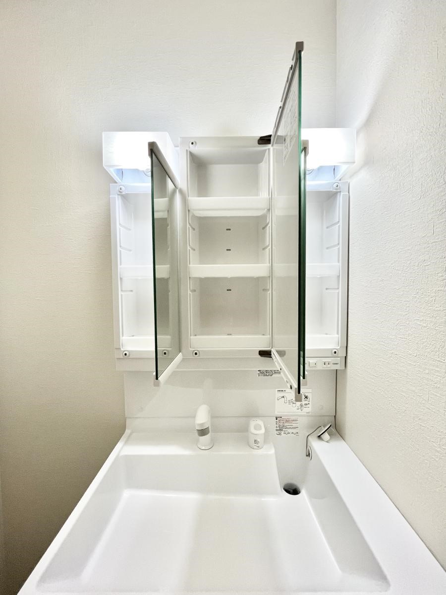 ◆1号棟◆三面鏡の裏に、化粧品や衛生用品...