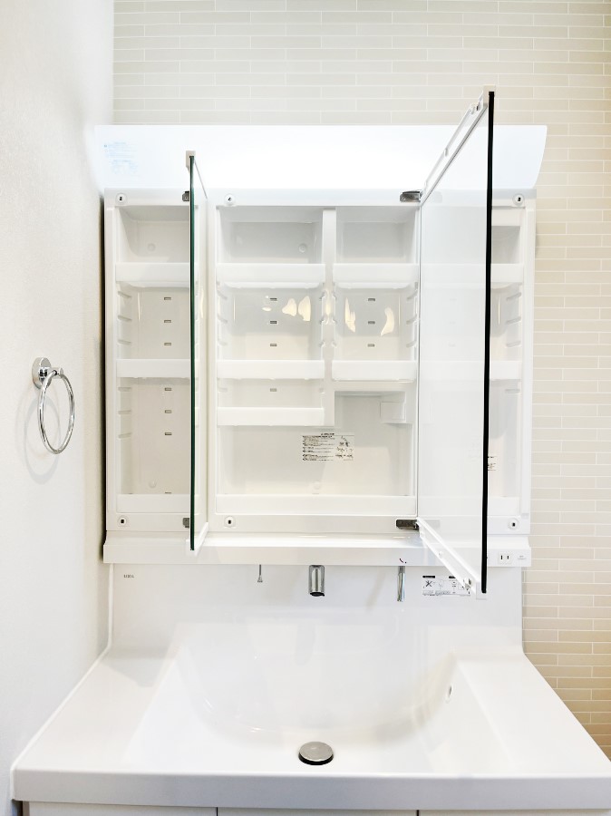 ◆1号棟◆三面鏡の裏に、化粧品や衛生用品...